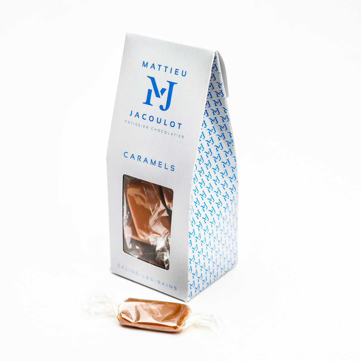 (en gras les allergènes) : sucre, beurre, crème, lait, chocolat au lait, fleur de sel, beurre de cacao, lécithine de soja.